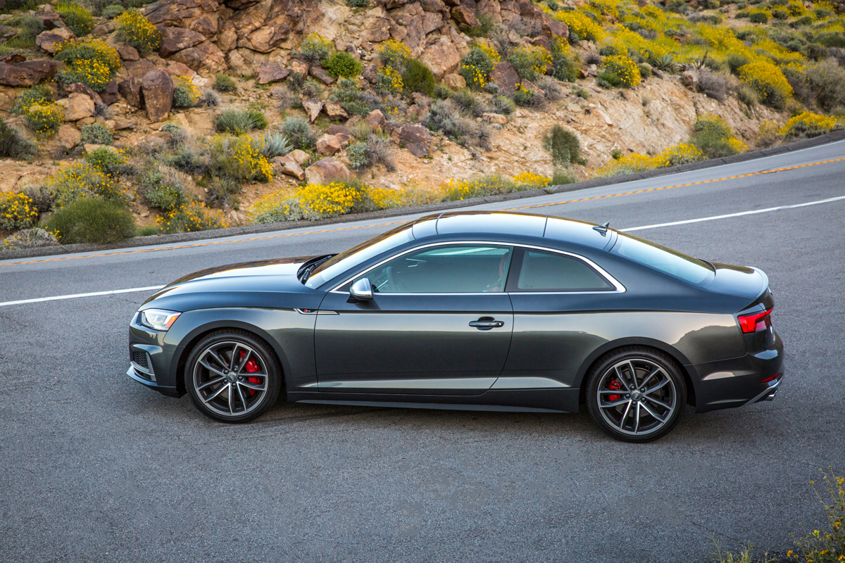 A snaking, high-desert road course is the ideal test of the all-new 2018 Audi S4 and S5—cars that are spawned from the petri-dish of their ultra-high performance stablemates, the Audi R8 and RS. (To clarify: the German automaker’s nomenclature for sedans, coupes and roadsters begins with its volume-leading base “A” models, and then imbues them with sports-minded looks and more driving character and labels them “S.” The top-level fliers, penned with race-themed cues and hardware, are injected with lightning-quick mojo and the “R” moniker is applied.) We put the newest S4 sedan and S5 coupe models to the test across almost 200 miles on a collection of roadways that started in Palm Springs.