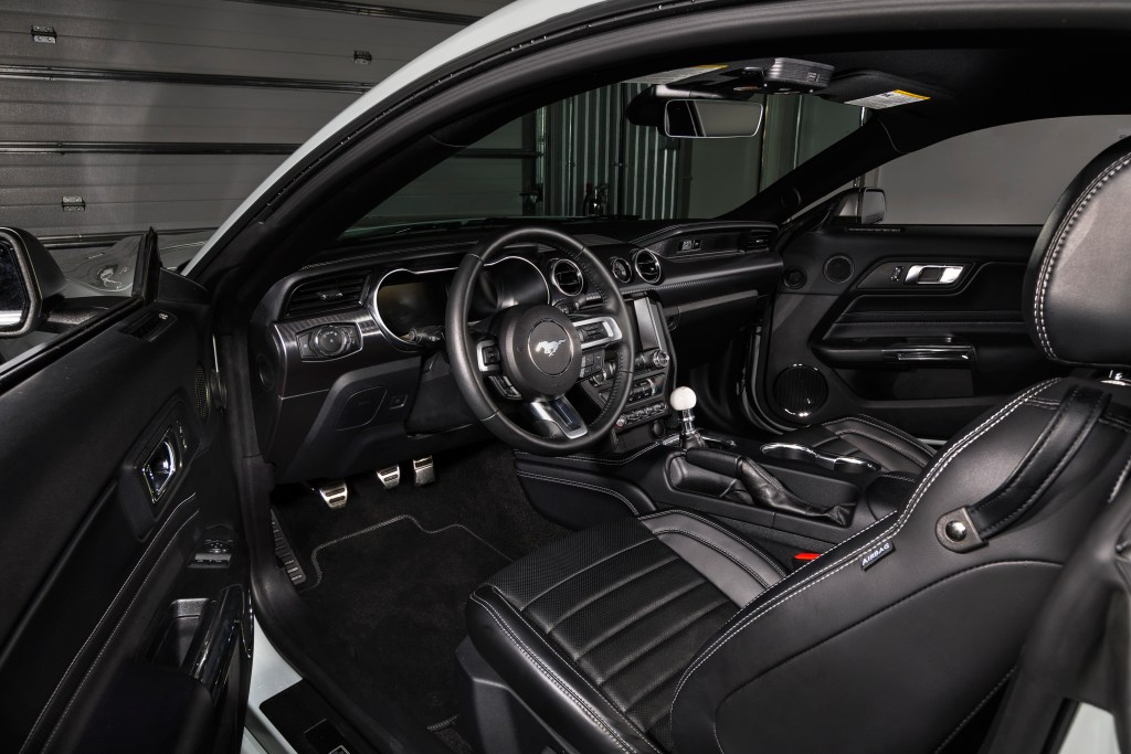 It’s extreme. The engine note is ferocious. On a straight, open road the Mach 1 almost builds speed quickly, taking just over four seconds to accelerate from zero to 60. But what really demands attention is the grip. Driven at speed, all these upgrades work in harmony to practically slam the car into the asphalt. And through a fast, curvy road, this Mustang effortlessly responds to every input, maintaining its balance as you flick it from corner to corner. But even at speed, this Mustang Mach 1 feels poised and composed. It communicates exactly what it’s doing, exactly when it’s doing it, delivering a heightened sense of exhilaration while allowing the driver to feel like everything is under control.
