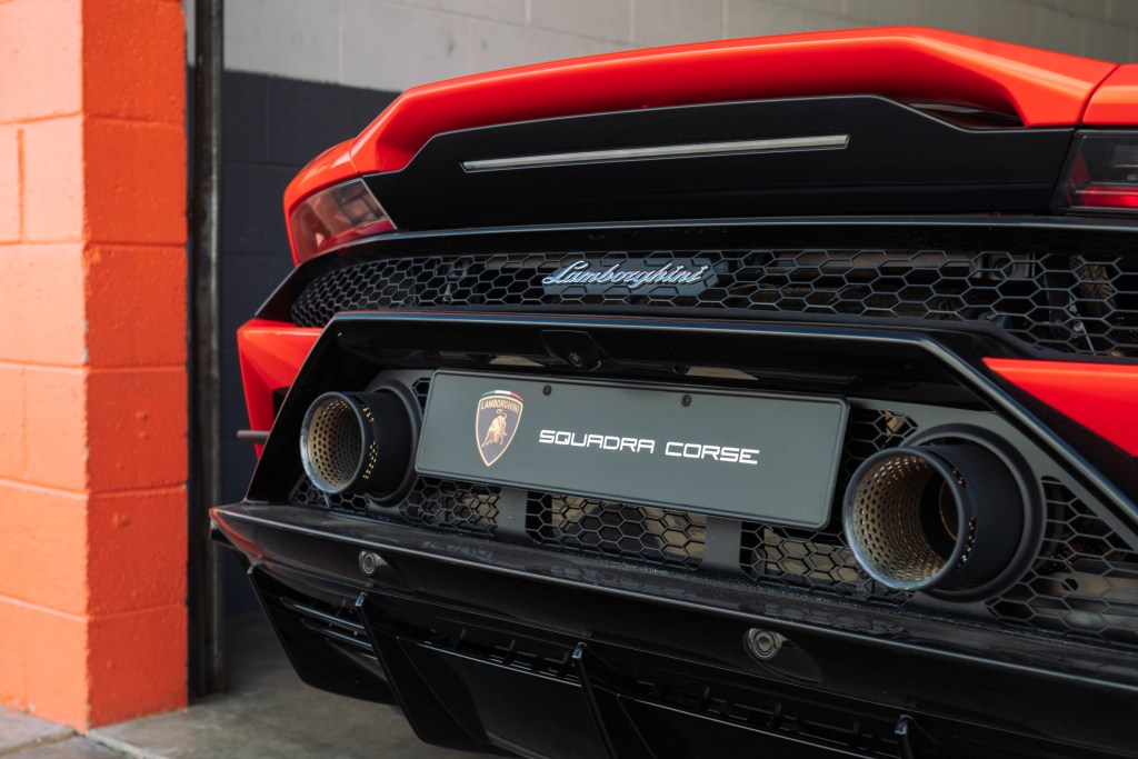 Outside, some subtle styling changes have further tightened up the Huracan’s look and improved aerodynamics to the point of netting seven times more downforce than the previous model. The new integrated spoiler looks the part too, much more rakish than the wing of the Huracan Performante. What remains the same is the absolutely dialed driving position. Confidence begins with a view directly down to the road, a steering wheel that you’re hard pressed to let go of and a seat that can be adjusted precisely to your preference.