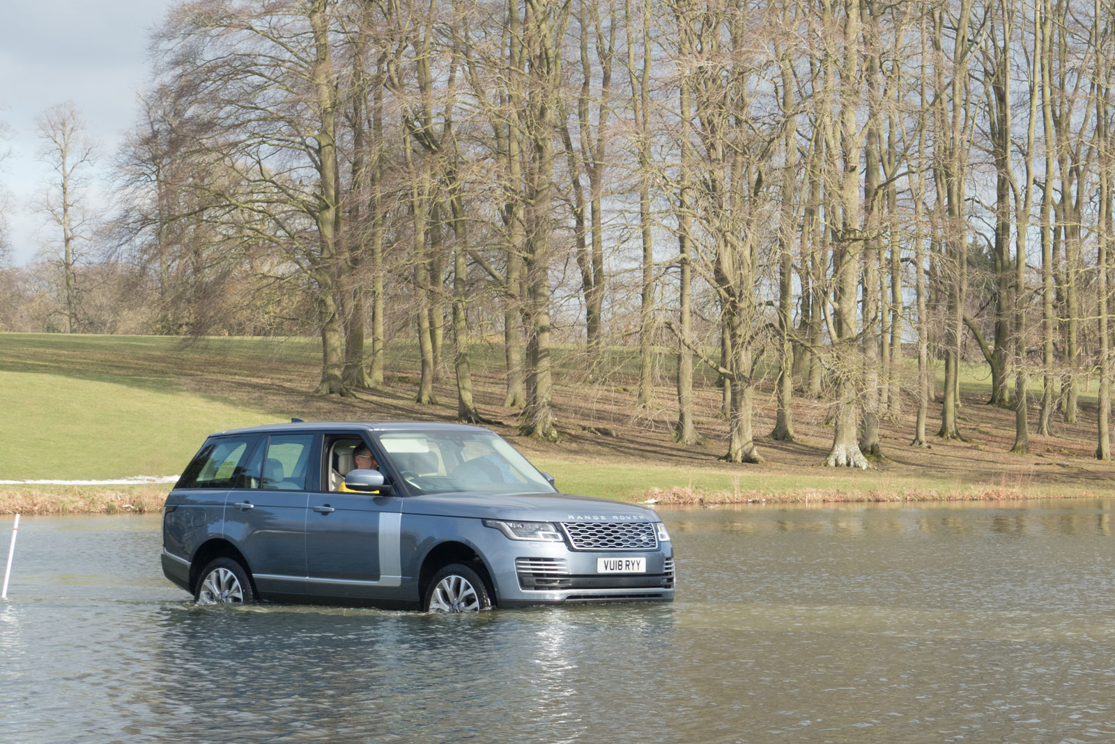 Two things matter off-road: torque, and getting power to all four wheels. Land Rover of all brands knows this, and if anything, this new Range Rover has an even better setup than a gas- or diesel-powered model. It still has nearly 12 inches of ground clearance and the electric powertrain delivers instant torque at every wheel, so you can modulate output very gently. We drove our vehicle in some thick mud on an estate about two hours outside London (where the weather had just been snow and sleet), and had no problem getting through the thickest mess, or more subtly gaining momentum and keeping it going for very steep climbs. There’s something else to consider here, too: silent running. That is, by switching to full electric mode we were able to drive along in the woods and, with the windows down, hear birds chirping.