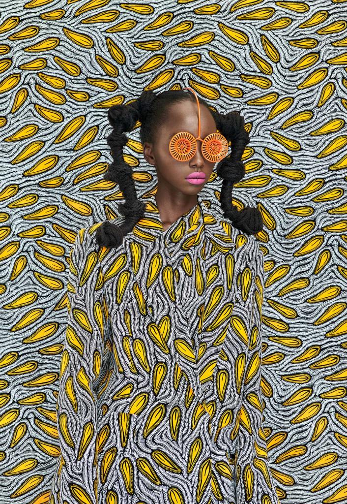 “They always come first,” Muriu say of the Ankara textiles that inform her “Camouflage” series. The bold, hypnotic and colorful patterns are the backdrop of each image, are used to make the clothes for the model and establish the title of the final work—which is often named by finding a Kenyan proverb that matches. Some of her favorites are “A woman’s beauty is not hidden in her face,” “A diamond does not lose value due to lack of admiration” and “When your sister does your hair you do not need a mirror.”