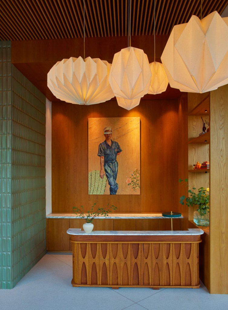 There are thoughtful attributes galore—from the numerous plants to the big garage doors that open out to the street (a structural element that will surely influence programming opportunities). Perhaps most powerful among these flourishes, however, is the art. More than 20 works grace the walls, with pieces ranging from a David Hockney original to Shizu Saldamando’s “Portrait of Taco,” and contributions by Alison Saar, Rebecca Campbell, Venice local Charles Arnoldi and his daughter Natalie Arnoldi.