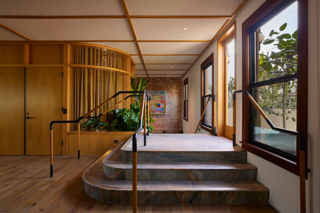 Brennan, much like Mekhayech, listened to the building’s owner. “We worked with Tony,” she says. “We looked at Venice today and the lifestyle of Venice and how it’s changed since Tony got the building in the ’70s. We also looked to the daylight the building receives. We didn’t want anything dark or heavy. We wanted the artworks to sing in these well-lit spaces.”