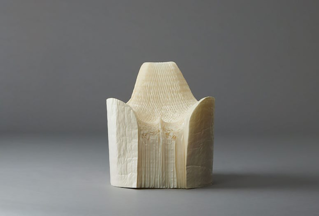 There are several standouts on view here. Harry Bertoia’s Welded Wire Side Chair is beloved for its innovative airy structure. Eileen Gray’s 1926 design, the Bibendum Armchair (named after the Michelin man mascot) boasts inviting plush, soft leather curves. The aforementioned Ekström Chair from 1972 stuns viewers, incorporating tubes of polyurethane foam-covered metal. Tokujin Yoshioka’s somewhat ghostly Honey-Pop Chair has been meticulously crafted from glassine paper.