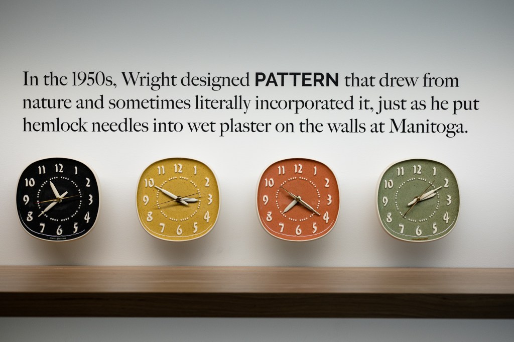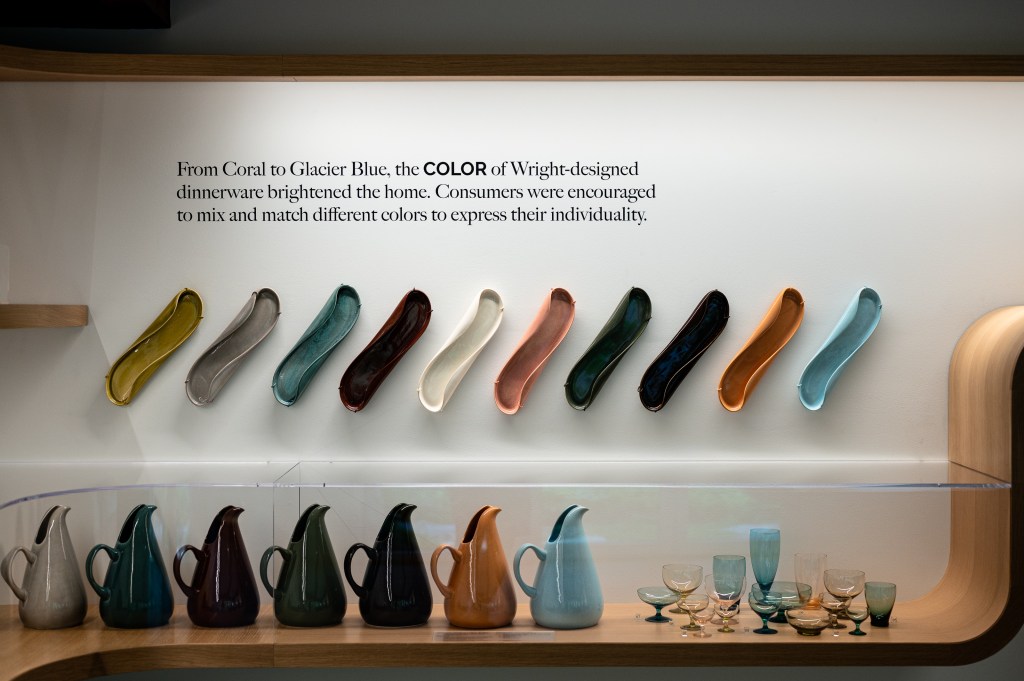 This new design gallery affirms MANITOGA’s place among the great mid-century design destinations (and glass houses) within reach of NYC. Long has the site been a time capsule of a precise vision and pristine design, as well as a hub for hikes through trails meticulously designed by Wright himself (he even moved rocks to his liking), but the design center succeeds in anchoring it to the present day. Many visitors may be familiar with the extent of Wright’s influence on dinnerware (and its broader “easy living” cultural implications), but the gallery reveals so much more.