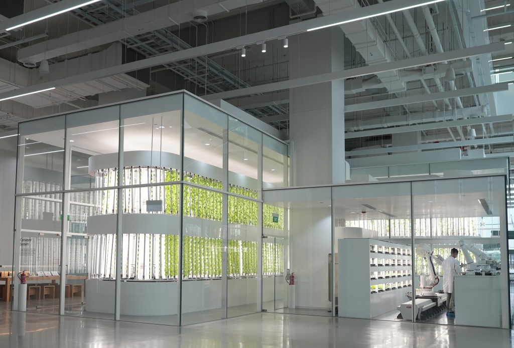 Hyundai has big dreams rooted in a new experiential center in Singapore that’s part urban factory of the future and part testbed for current and yet-imagined projects. The factory opts for a vertical design, and has seven unique floors with different purposes. A hydroponic smart farm can be found on the first two floors, and is fully automated, growing nine different crops including sorrel, mustard plants and the visually fascinating ice plant. A robot does everything from seed-planting to transferring the young plants to a tower system that rotates the plants, and controls temperature, humidity, light exposure and nutrition. At present a few hundred plants can be produced per day. Hyundai plans to open a restaurant to showcase this produce, and also gives a plant to new car owners as a memento of their visit. In another twist of how different this facility is, shoppers can custom-order their cars on an app, and then come and pick their car (and plant) up right at the factory.