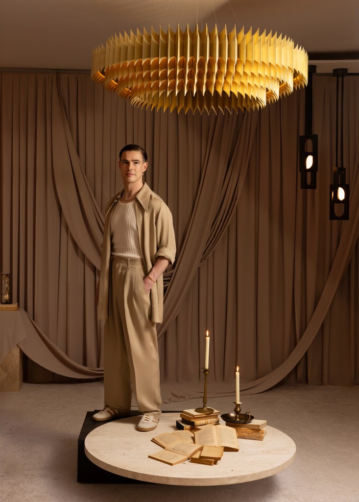 In his Tribeca penthouse and showroom longtime COOL HUNTING favorite Lee Broom revealed his new Alchemist collection, which includes four eye-catching new lighting styles: Mythos, Solstice, Gemini and King. “The whole collection is inspired by Paulo Coelho’s ‘The Alchemist.’ I’ve read it a number of times and every time I get a new sense of perspective,” Broom tells us. “I wanted to base the collection around that book, as well as other stories from mythology, folklore and fables that I think resonate now more than ever.” A sense of the mythic infuses the shapes of all four ranges. The centerpiece is King, a chandelier of overwhelming beauty that marries a brutalist sculptural component with a medieval aesthetic referential to a crown. It took 18 months to develop, and links laser-cut aluminum leaves that have been folded and brushed by hand. The illumination is hidden, lending a fire-like shadow glow.