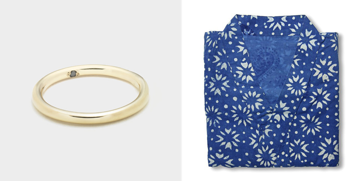 Inspired by the Japanese yukata (or summer robe) Hotel Saint Cecilia’s indigo kimono ($250) makes for luxuriant loungewear. Each has been custom made from 100% cotton indigo-dyed batik fabric. These are unisex, one-size-fits-all articles, with a sash belt to tie it up.