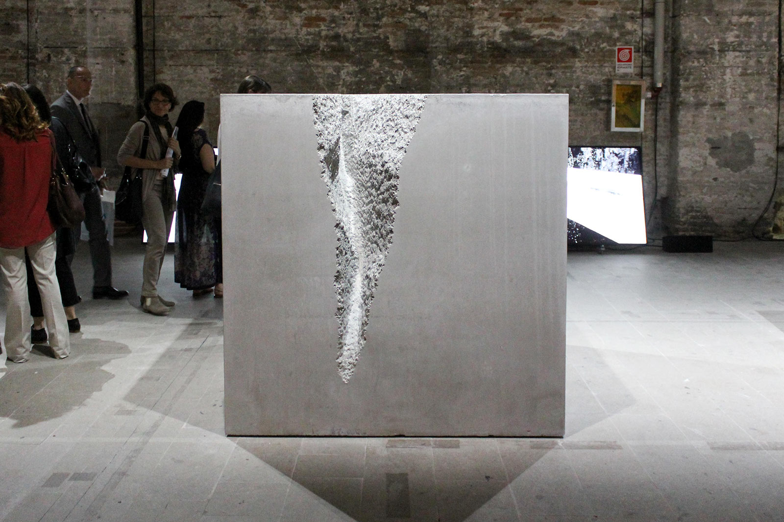 The first installation is curated by Aravena (the Chilean architect who won the 2016 Pritzker Architecture Prize) and is repeated at both locations of the exhibition, the Arsenale and the Central Pavilion at the Giardini. It’s a ceiling of vertical metal structures, hanging like stalactites, surrounded by a wall of plasterboard clippings. Made from materials used for the construction of last year’s Art Biennale, the piece offers a powerful message. And it’s not one of guilt or criticism, but one of encouragement and hope.