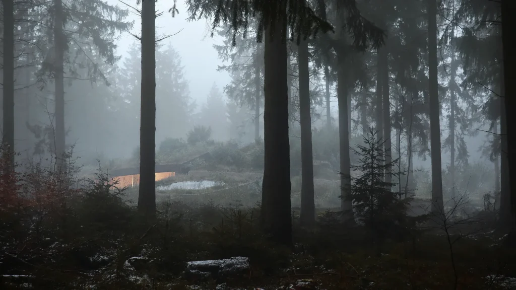 The other building on the island will be Wood House, a bunker-like annex that lies on the island’s eastern shores. It is proposed to be made with cross-laminated timber from trees on the island. “Laminated in different directions, it’s a relatively new technology,” says Ryohei Koike, lead architect of the project. “So, it can be as thick as possible and almost as robust as concrete.”