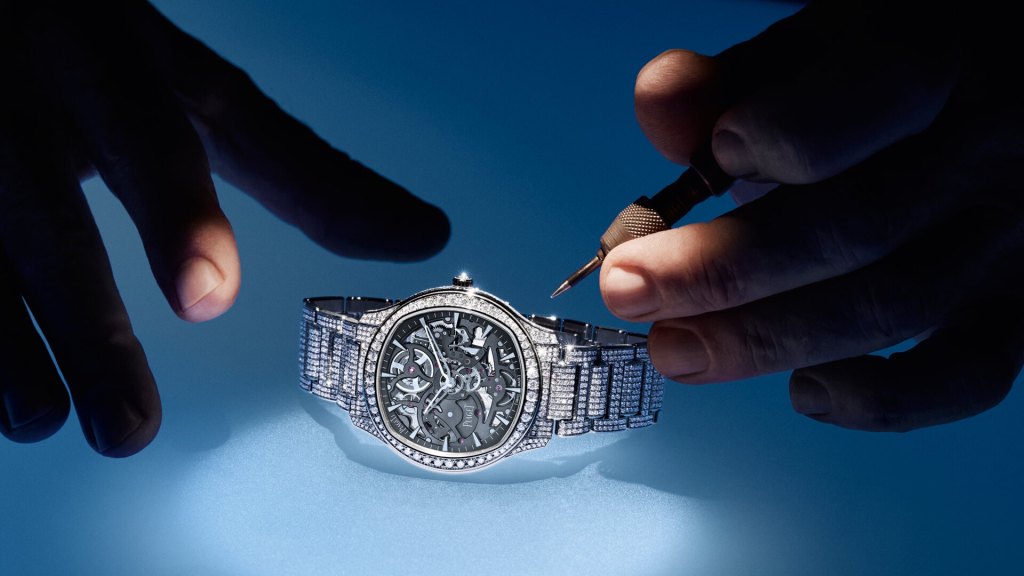 Though the diamond paving on Piaget‘s Polo Skeleton might be the most pronounced attribute (thanks to a whopping 1,747 brilliant-cut gemstones), it’s the ultra-thin skeletonized movement that’s the most powerful demonstrations of the maison’s watchmaking expertise. In fact, the Polo Skeleton’s 2.4mm-thick Calibre 1200S1 is one of the world’s thinnest self-winding movements. It’s masterfully intricate and hypnotizing when gazed upon.