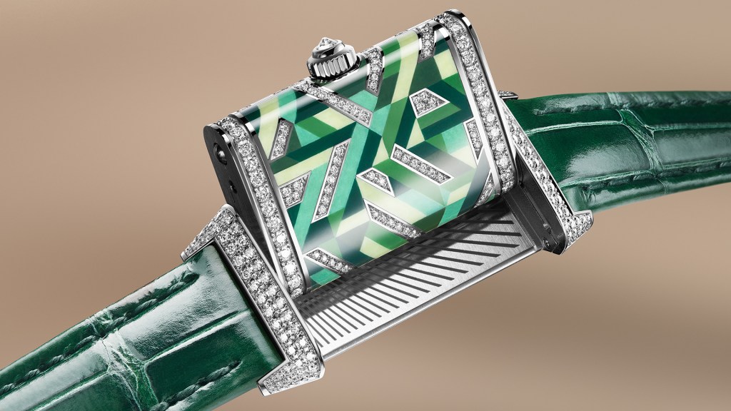 An Art Deco masterpiece from Jaeger-LeCoultre‘s in-house Métiers Rares atelier, the Reverso One Precious Colours pairs miniature-painted grand feu enamel with diamond-set accents. It’s a playfully elegant expression of the brand’s artistry and technical capabilities, enveloped by the iconic Reverso case shape crafted from white gold. Within the wristwatch beats the hand-wound Calibre 846 (developed and produced entirely by Jaeger-LeCoultre).