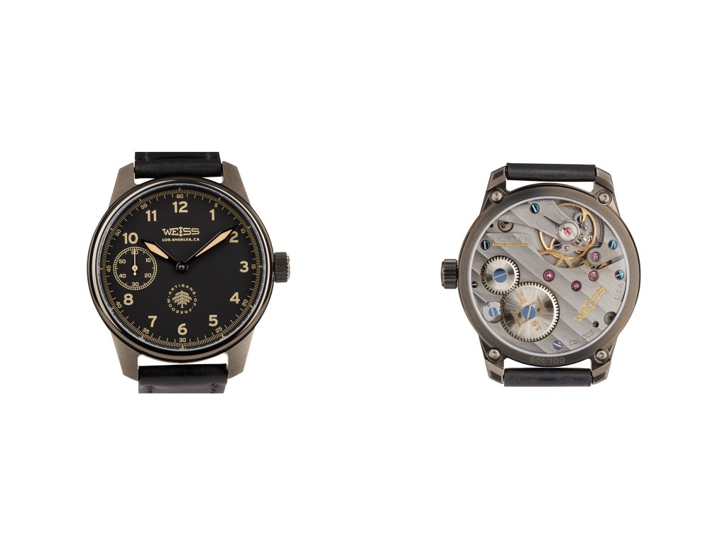 The watch is manufactured in its entirety in Los Angeles and features a black DLC coated 316L stainless steel case, black oxide steel hands with Super Luminova and a fully mechanical, limited edition black plated US-made Caliber 1003 movement. An Artisans of Freedom marker sits at the top of the watch face.
