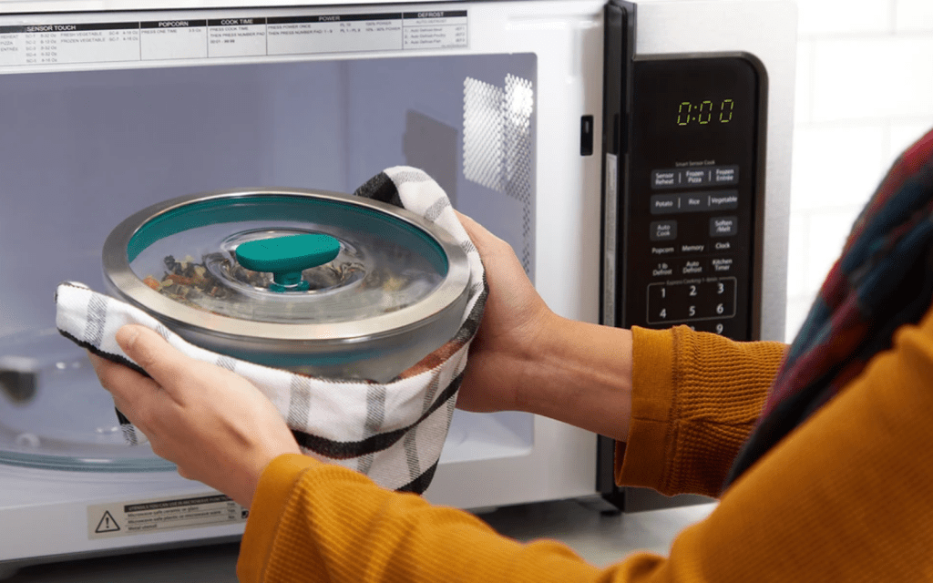 “We’ve designed the stainless steel in our lids to be 100% microwave-safe due to its smooth, curved shape,” she explains. “I know it sounds nuts, but it turns out we’ve all been brainwashed to believe that all metal is not OK in a microwave. In reality, some metal is totally safe! If the metal is rounded, it won’t arc. A metal bowl, for example, is fine, but don’t put in metal that is super thin (aluminum foil) or has multiple sharp corners (forks).”