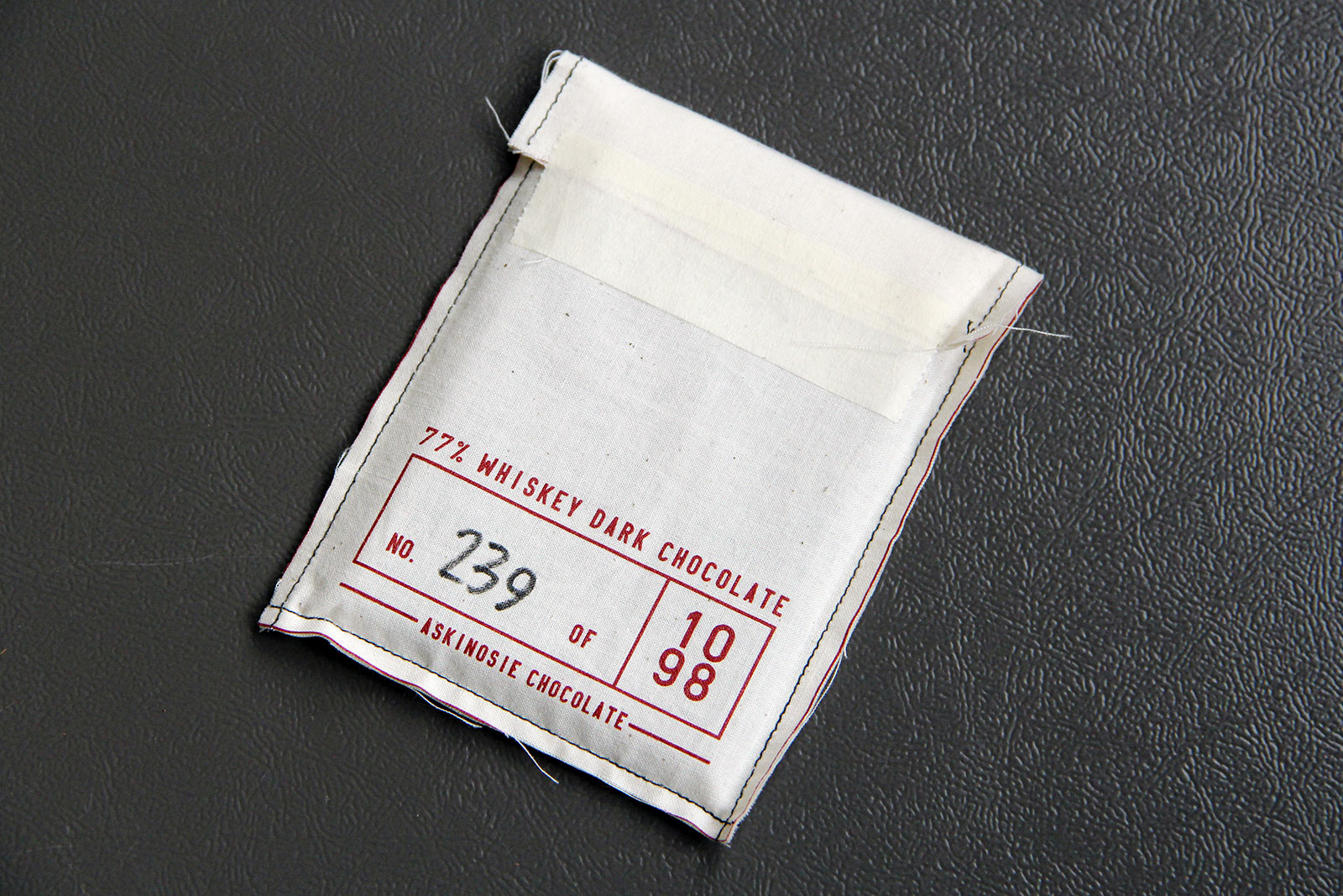 Their latest project is two years in the making: the 1098 line, where an experimental recipe is made in a limited edition of 1,098 bars. The debut product is the single origin 77% Whiskey Dark Chocolate bar, for which Trinitario nibs are aged in a Jim Beam oak whiskey barrel for two years, then ground in the factory’s century-old melangeur. Add organic cane sugar, and the result is a nuanced bar that’s refreshingly different than most—boisterous and complex, leaving behind a mild whiskey aftertaste. The cloth pouch it is packaged in was sewn by monks at a nearby Trappist Cistercian monastery, where Askinosie is a Family Brother.