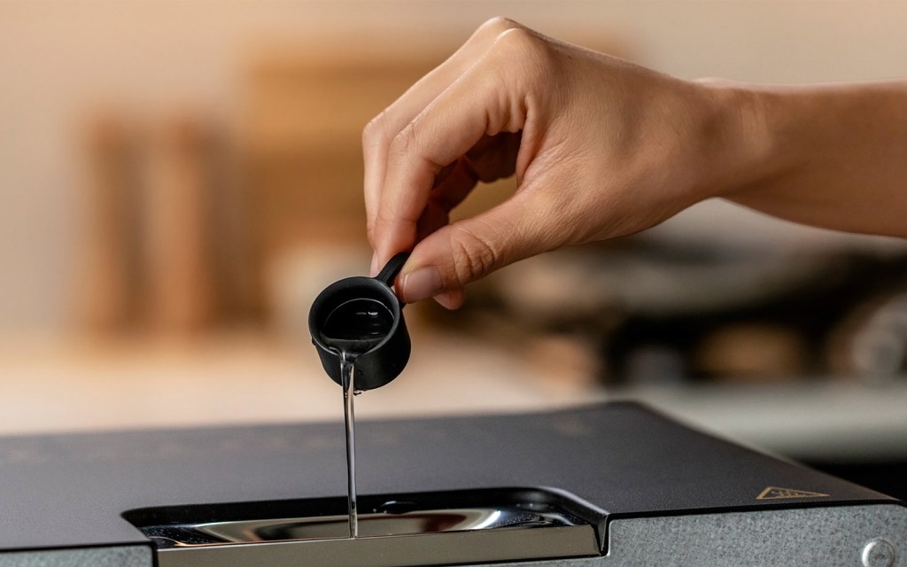 One teaspoon of water fuels the device’s precise steam technology. Pouring it (using the included miniature mug) into the toaster allows for dispersion throughout, thus heating the interior more rapidly than air would. An enveloping cloud of steam—which is carefully monitored by the machine to ensure the temperature gradually rises from 140 degrees (when the crumb softens) to 428 degrees Fahrenheit (when the crust browns)—toasts the exterior while preserving its inner moisture and flavor.