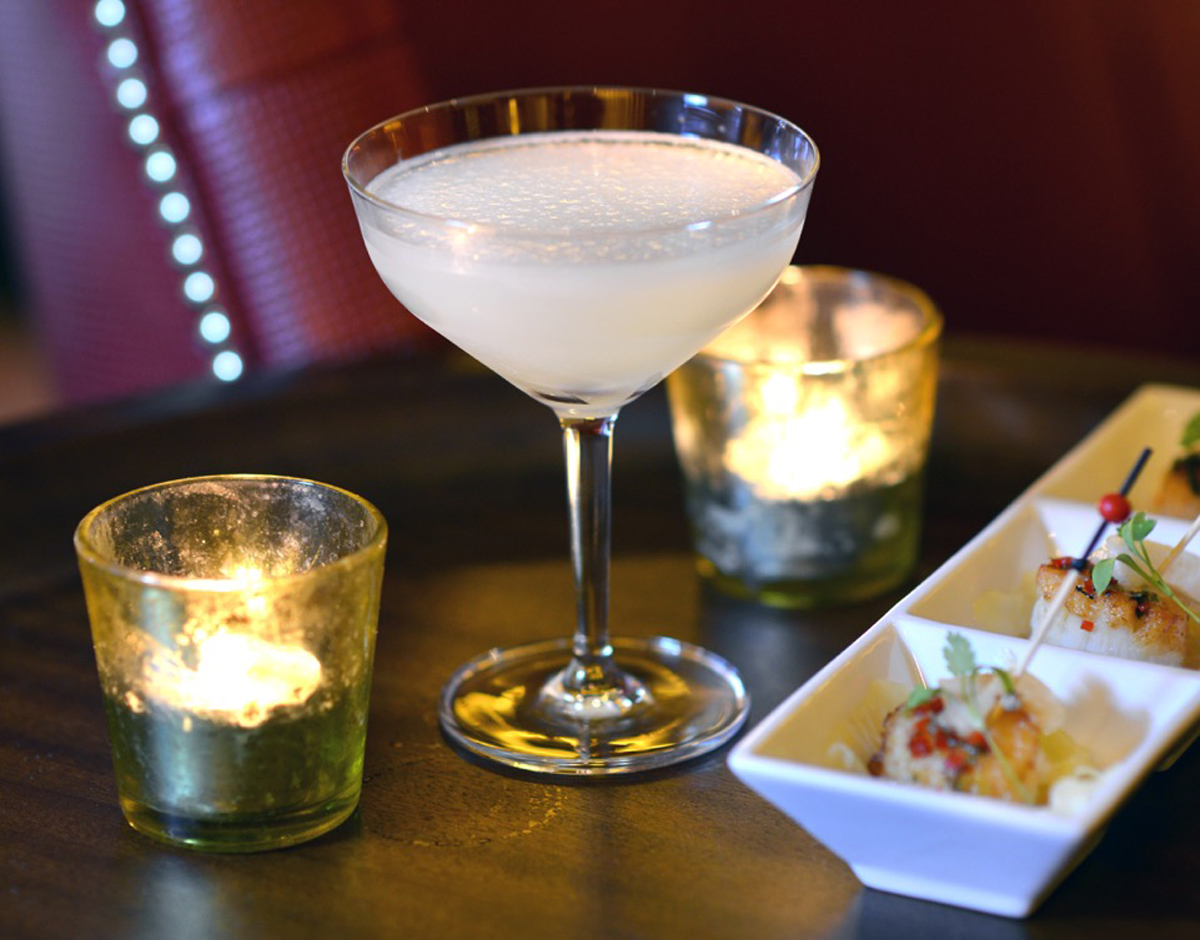 flavors. Strain into large coupette glass and garnish with lime wedge.