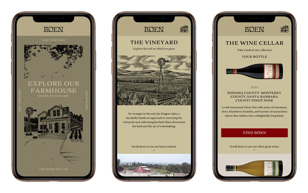 “Wine drinkers today crave authenticity, but they enjoy a unique experience as well,” Wagner says. “Technology can help bring wine drinkers back to the roots and history of the wine and the vineyards they come from, while also elevating their wine experience. I am first and foremost a farmer and my life has been dedicated to the art of winemaking and working with my hands. In fact, BÖEN is a translation of ‘The Farm,’ and this virtual farmhouse allows consumers to explore the journey that their bottle of wine took. It gives drinkers insight into our vineyards where the grapes are grown, and how the season brings forth the robust flavors we’re known for.”