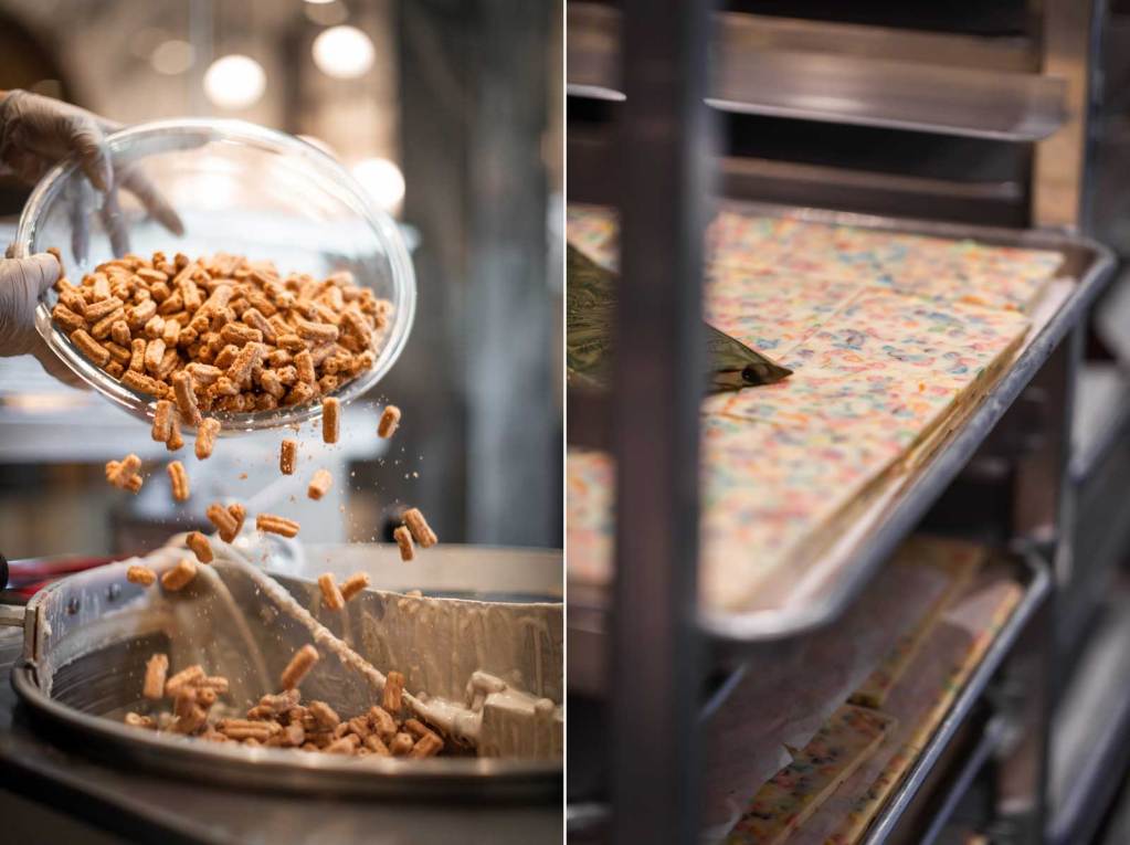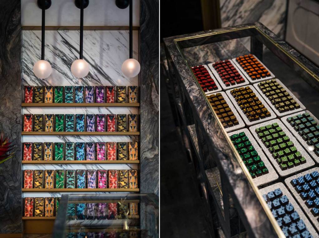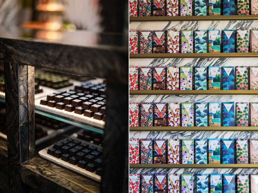 I wanted it to feel when you walk into the chocolate store that you’re walking into the chocolate factory. When you walk in, there’s a 60-foot glass wall making the space feel really large. We always say that the chocolate-making is the heartbeat of Compartes and that is something that we haven’t really been able to showcase before. It’s about the chocolate, the beautiful ingredients, the caramelized pecans, the doughnuts from Primo’s, the birthday cake we get from local bakeries. When you walk in and you see them making a doughnut bar on the left, and on the right you can pick up a bar that was just made, it’s an incredible feeling.
