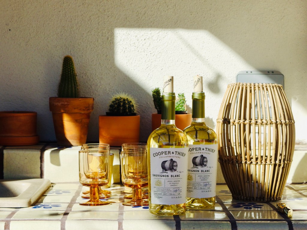 For Cooper & Thief’s Sauvignon Blanc, Leamy sought Casa Noble Añejo Tequila barrels for the citrus and spice notes. After three months inside, the white wine adopts those flavors and contrasts them with toasted bread and vanilla notes of its own. As a base for a remixed Margarita, Cooper & Thief’s wine surprises without disturbing the long-held profile of the popular drink. As the base for a mid-afternoon sangria on ice, the wine lends complexity and depth.