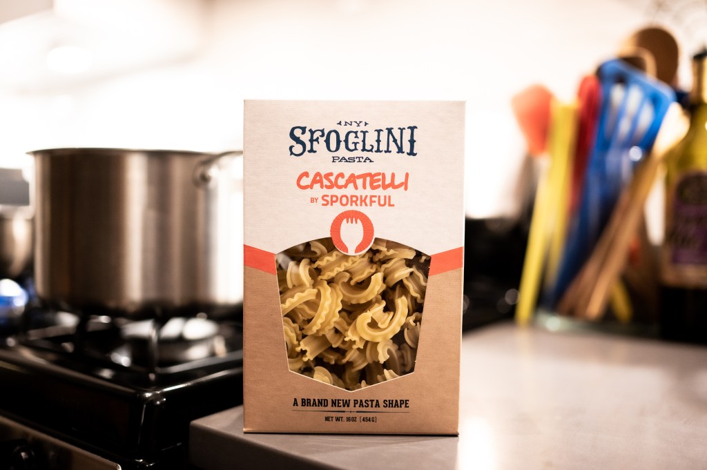 Available exclusively from Sfoglini, Cascatelli launches today: $5 for a 16-ounce box and $18 for a four-pack. You can listen along to the journey with Sporkful’s five-episode series Mission ImPASTAble.