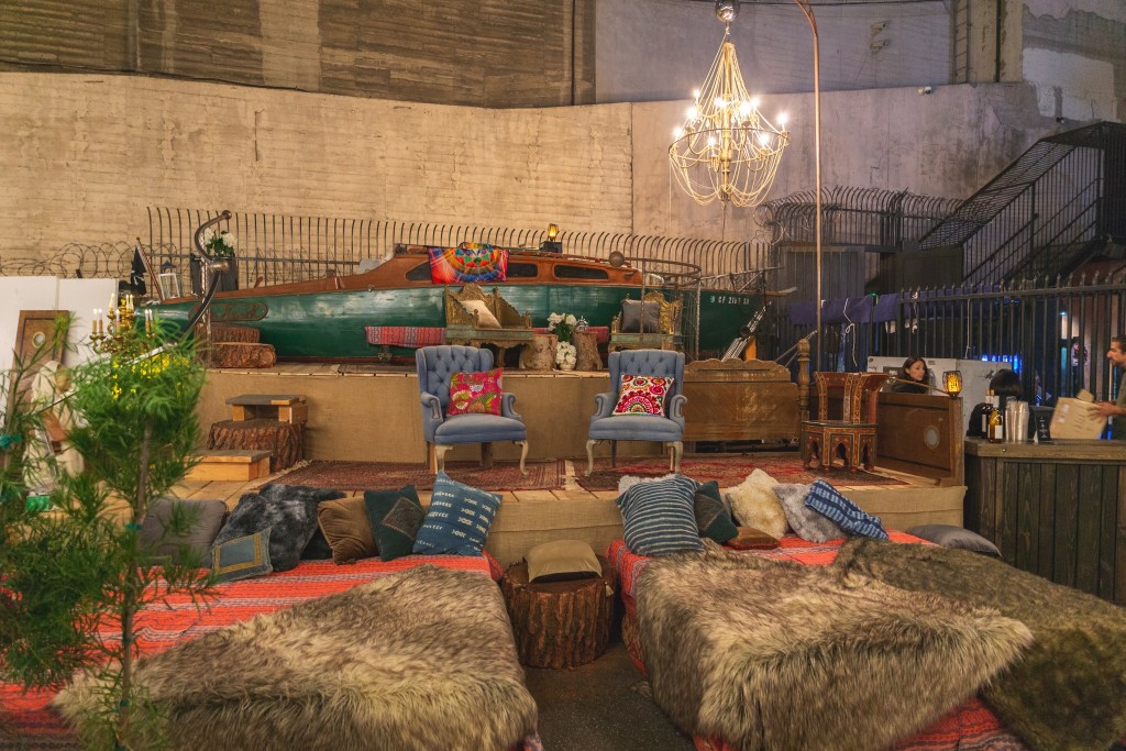 Many progressive festivals talk about sustainability and, similarly, Summit wanted to ensure they followed through on their mission to limit waste. After every meal, thousands of pounds of food from the main marketplace were rescued and donated to the Midnight Mission, which offers meals to those in need. With this as the inspiration, the idea for Superchief Gallery and Fords Gin’s Trash Tiki Wasteland Paradise cocktail pop-up was born. For the closing night party on Sunday, unused ingredients from all the weekend’s events were used by the tiki bar, hosted at the Belasco Theater. Superchief Gallery even commissioned artists to collect recyclables to build tiki-themed installations throughout.
