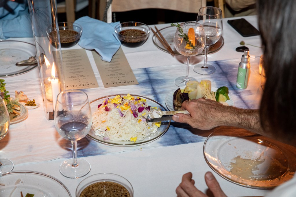 Like all of Supper Club’s experiences, Thomas’ dinner extends beyond food, engaging with the scenery, art and atmosphere to present cuisine as the culinary art it is. The Brooklyn Grange, the chef continues, does so by cultivating how dinner guests should approach the dinner: “A garden makes me feel at peace, and I really want to create moments of observation in the space.” Throughout the garden and dining area, art and sculptures curated by creative studio Pink Essay and their curator David Eardley will “create moments of presence and architecturally place people in the space and move them with intention,” says Thomas.