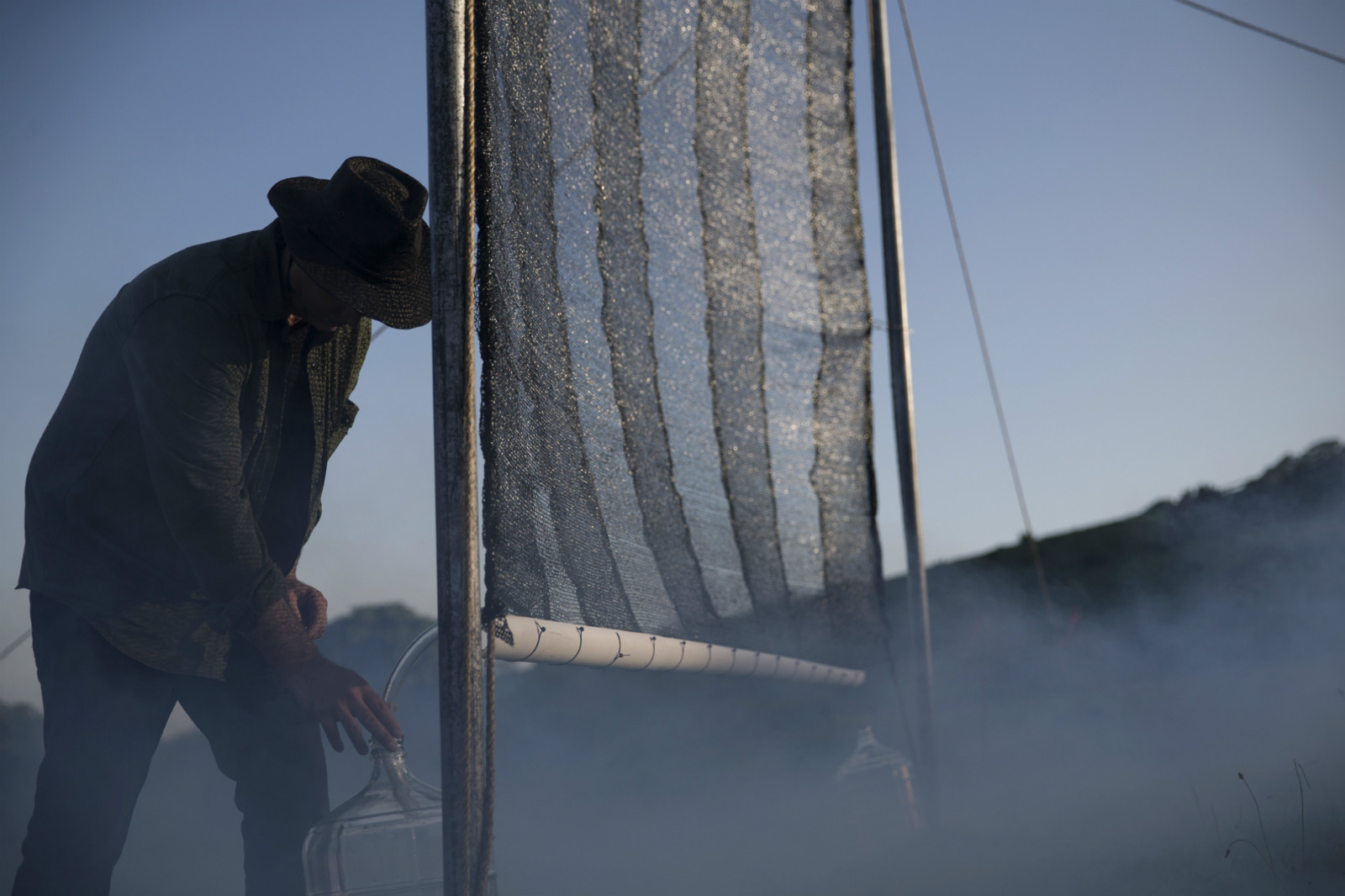 As many are aware, vodka is not an odorless and flavorless spirit, despite the fact that it purports to be. There is tremendous variation and there are two factors when it comes to everything from minerality to mouthfeel: the distillate, and the water added to reduce to proof. The water here has been captured with a series of fog catchers, developed and built by Chris Fogliatti at Fog Quest, composed of precision-engineered mesh canvas. When stretched across a frame and left in foggy areas, it actually pulls moisture from the air and collects them in beads and ultimately into basins. This has no negative environmental impact.