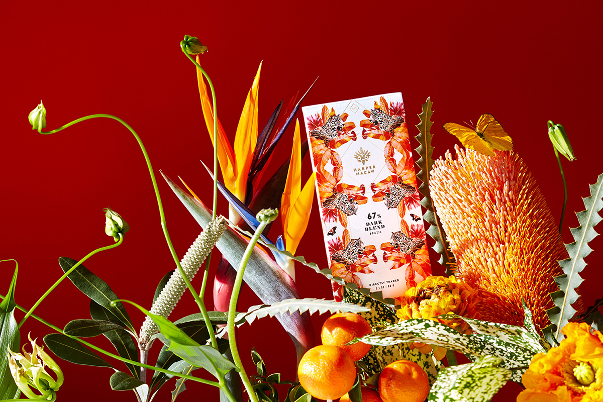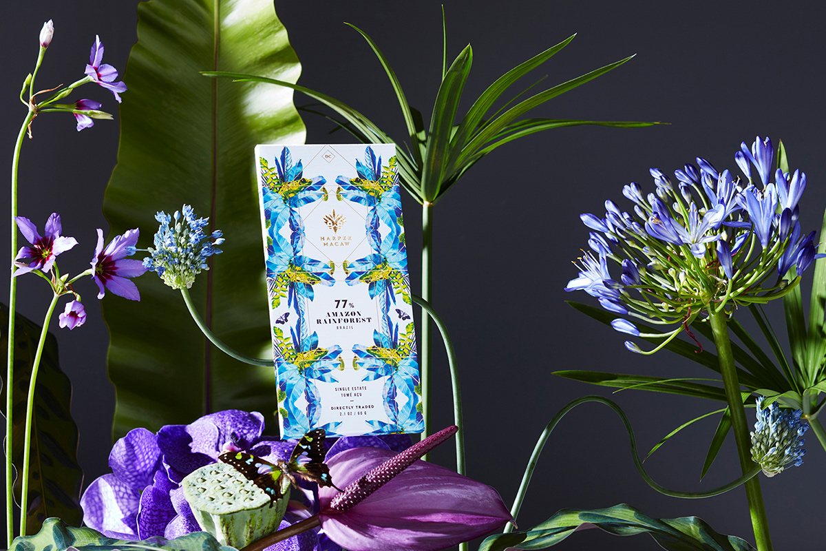 By exploring her love of chocolate, Sarah Müller Hartman of Harper Macaw pays homage to her beloved native Brazil. Culinary school classes led her to reading about the science of chocolate and eventually taking a course in chocolatiering. “I fell in love with chocolate,” says Müller Hartman. “One of the things that caught my attention was the potential for cocoa agroforestry to be a force for good in the rainforest. So instead of mono-cropping and planting one type of crop, it is when you intercrop. You plant a line of rubber trees, then a line of banana trees, and help both financial and environmental outcomes.”