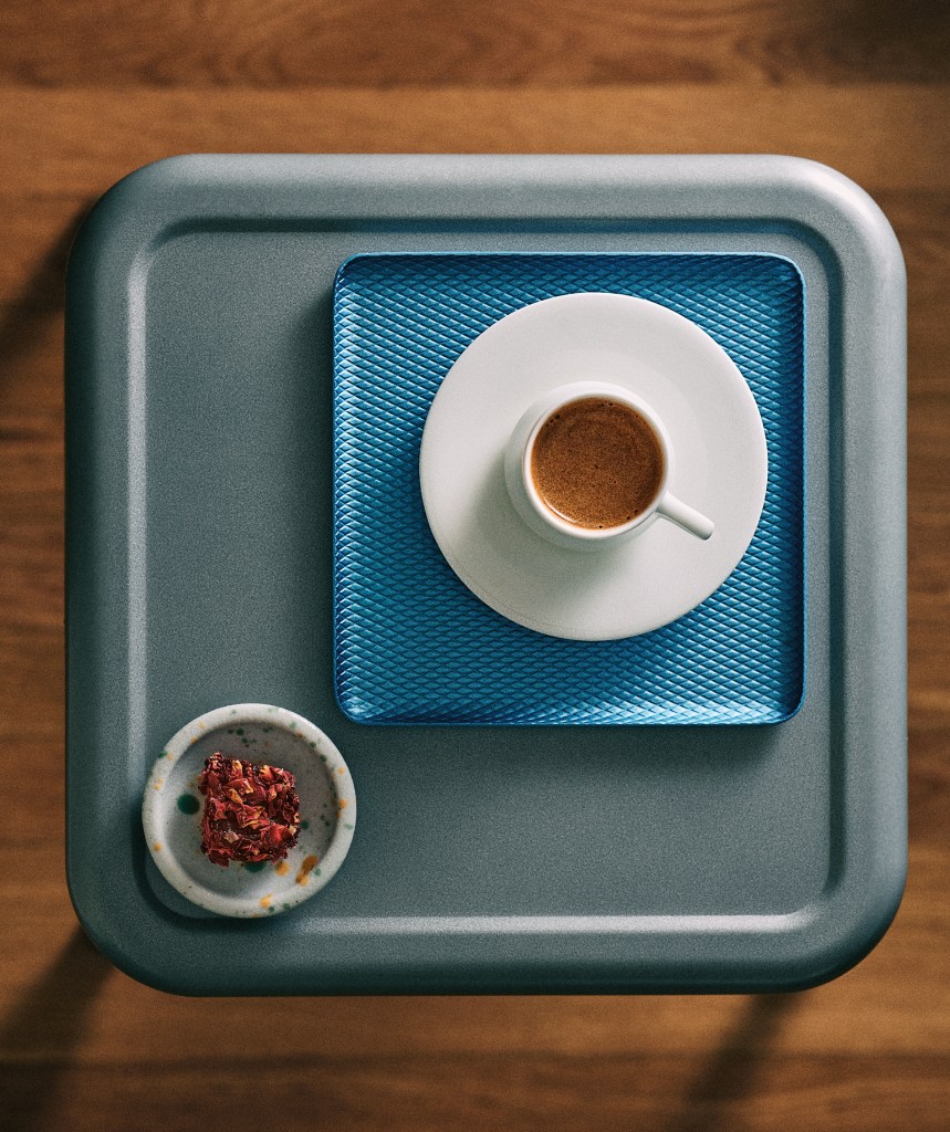 For the photography, Meehan worked with AJ Meeker. Sasso and Meehan believed the spirit of what they had been working on might best be achieved with a photographer who shot on film. Meehan had worked with Portland-based Meeker on local shoots and admired his work in Josh McFadden’s cookbooks. Meeker had a shop in California that he felt comfortable sending film to be developed, and a Portland shop that could regularly loan him a 1950s Hasselblad medium format camera. They shot the book over the course of a year, so that they would always have seasonal produce to work with. They worked in various spaces of Meehan’s kitchen and home to achieve the overall architectural and cinematic style of the cocktail images. Sam Anderson’s vibrant green “Lava Lamp” cocktail is perched on the edge of corner molding, while Meehan’s recipe for “Gut Punch” with Hojicha kombucha is shown being served in a rustic, speckled ceramic pitcher and cups.