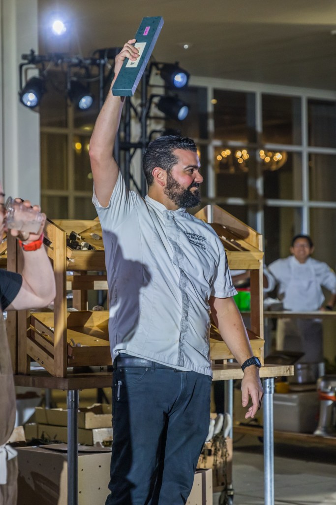 Now all he had to do was use the sharks in some kind of dish that would convince voters to choose him over other competitors—including Ben Norton, executive chef at Husk in Nashville; Carlos Raba, co-owner and chef at Clavel in Baltimore; Jes Tantalo, executive chef at Redlight Redlight in Orlando; Katsuji Tanabe, owner and executive chef at a’Verde in Cary, North Carolina; and Ricky Moore, founder and owner of the Saltbox Seafood Joint in Durham. This year was Collazo’s first time competing himself, while also overseeing the event.