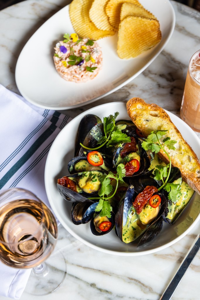 The food is sort of similar, although not exactly as aspirationally creative as the cocktail menu. It’s aspirational in the sense that chef is trying to get the most market-driven menu that he can on the table every day. We have a different menu in the downstairs Wallace Room, as we do in the main dining room. We call our food French Mediterranean, which Resy doesn’t even have a category for, so sometimes we wonder if that makes sense to people. The idea is from chef and inspired by the Mediterranean. He’s always felt his personal style was more along the lines of the bright sort of Mediterranean flavor profile, which he could sort of color with the French technique and School of Cookery. Our most popular dish has become the duck. The cooking is obviously masterful. The breast is served perfectly, the skin is crispy.