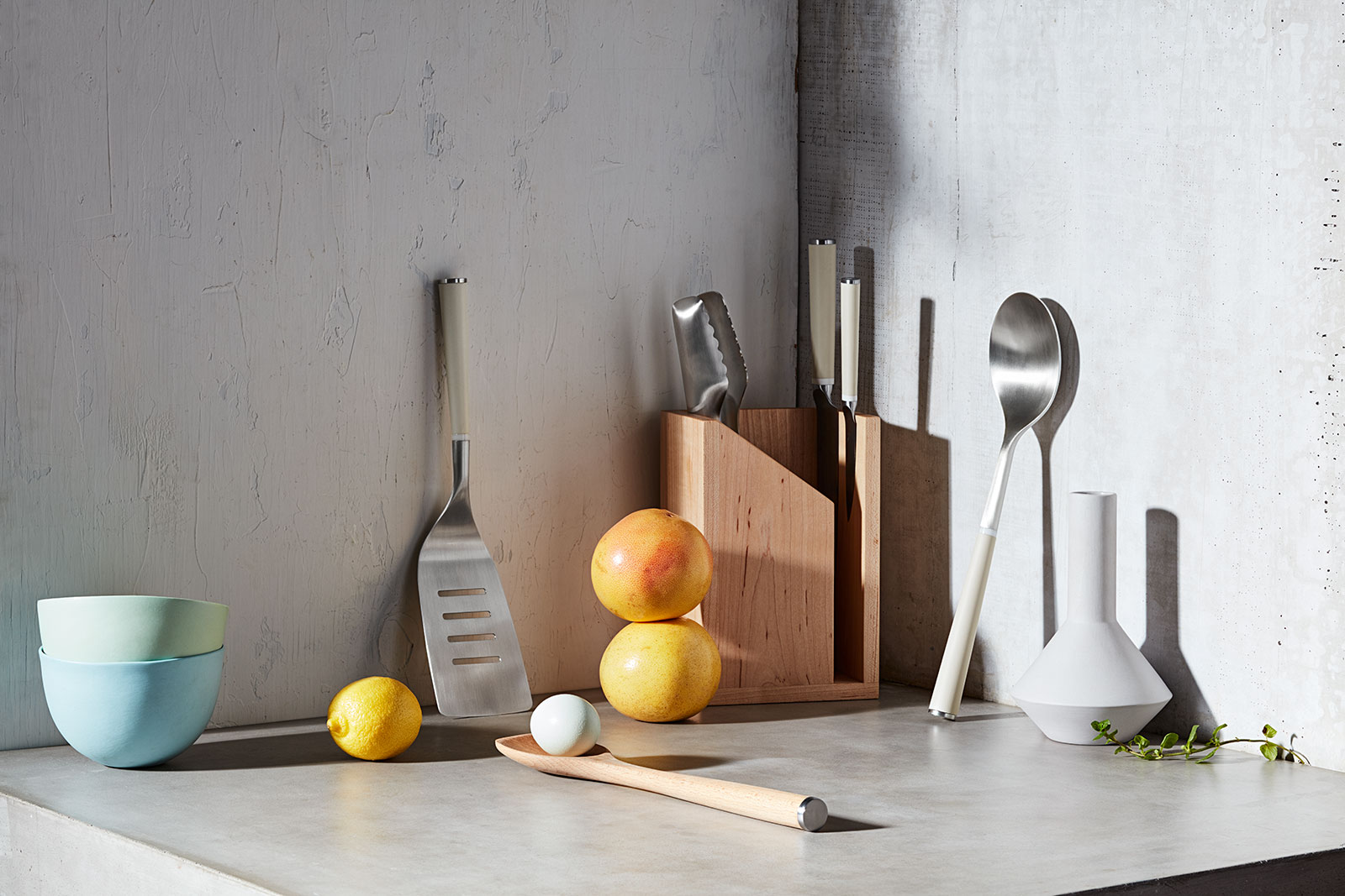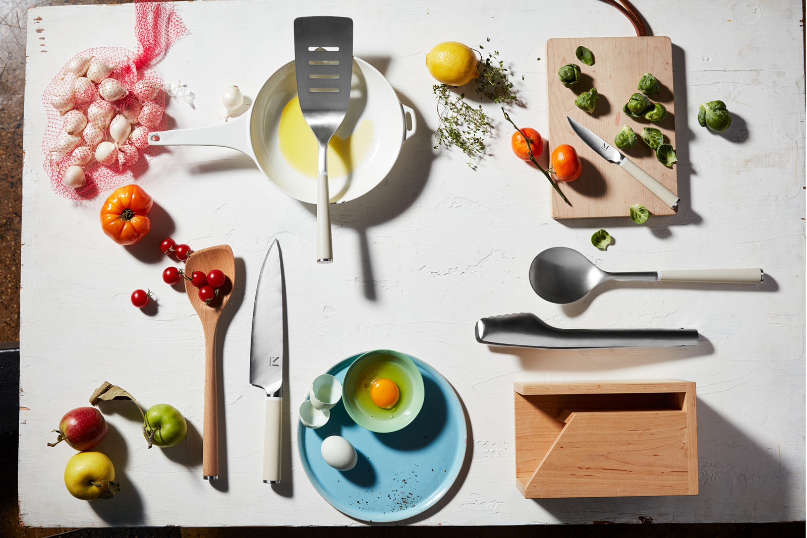 “We were inspired by life around us—and the inherent messiness,” co-founder Eunice Byun tells CH. “Both Dave, my co-founder, and I love cooking, and as much as we like to believe that we have Kon-Mari’d our entire lives, the kitchen was always off limits. I had accumulated a lot of stuff from my wedding registry (my Japanese knife set that was extraordinarily expensive, and wholly under-utilized) and upon the birth of my daughter, only piled on more stuff. Dave, on the other hand, was living with his brother at the time who is a trained chef. He had drawers full of kitchenware that cost too much and required too much care. So, we recognized the need for a brand to help edit our kitchens by providing us an assortment of items that you will actually use every day, for every meal.” Their research involved looking through cookbooks and blogs, as well as talking to family and friends, on what tools they kept on the counter at close reach,