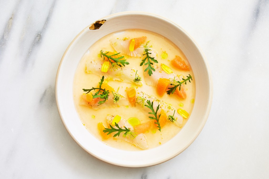 Their menu also includes a mezcal-focused drink called Thorn In My Side (mezcal, rose, galangal, sweet basil seed, bergamot and seltzer), and an Arctic char dish (with grilled peach, sprouted hazelnuts and succulents).