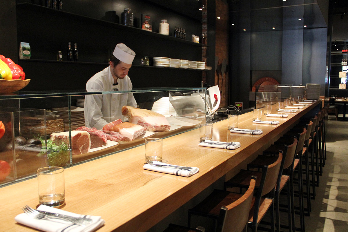 There are four kinds of mozzarella on offer: classic, smoked, burrata, and burrata with black truffle. All of this is on view at their open Mozzarella Bar, where guests can also dine while also observing salumi being sliced before their eyes and pizza (with dough made in-house) cooked in their stone dome oven.