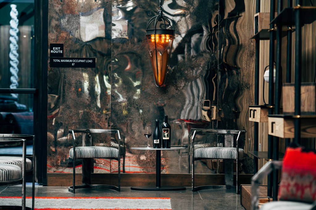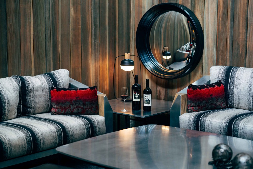 It’s been an unconventional journey from bottle to brand for The Prisoner, and its third owner wanted to give it an unconventional home as well. So, they hired architect Matt Hollis and designer Richard Von Saal who, together, reimagined the space with what they called a retro-futuristic feel, to showcase not only the 10+ wines currently in The Prisoner’s portfolio but also to create a space that celebrates local makers.