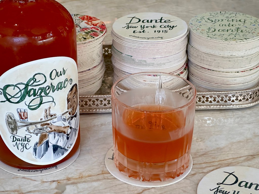 One of many highlights from the spring cocktail menu of NYC’s legendary Dante, the Chamomile Sazerac is a lightly herbaceous play on the classic. The pairing of Suntory Toki Japanese whisky and Seven Tails Brandy lends structure, while absinthe and several different types of chamomile essence act as punctuation.