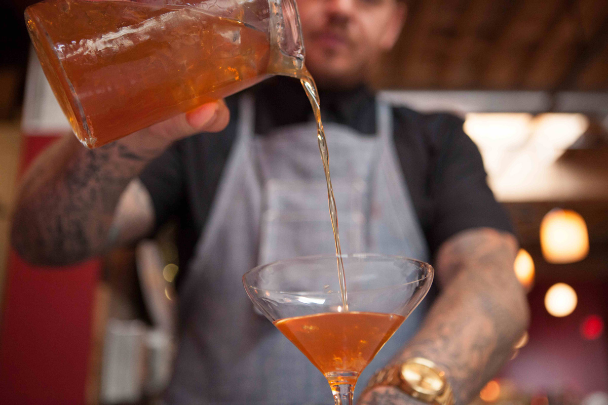 Barrel-aged cocktails have quickly become a staple at higher-end cocktail bars. The practice rounds off the hot edge of the alcohol, enriches the cocktail’s flavor and infuses it with the aroma of charred wood. However, it’s difficult to keep adequate supplies of each cocktail on hand and coordinate with seasonal menus, especially when most have to be aged so far in advance. With a balance of technology old and new, Portland, Oregon’s Trifecta Tavern offers up its own take on barrel-aging and the resulting unique cocktails—like a Manhattan with charred bone marrow—make it a must-visit.
