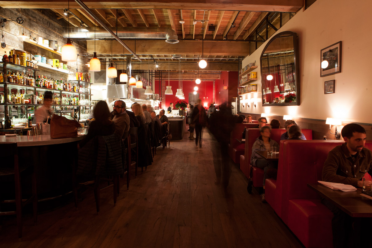 Bar manager Colin Carroll decided to use the bar’s proximity to the tavern’s kitchen equipment to sidestep and improve upon the lengthy barrel-aging process. Carroll purchases different varieties of wood chunks from a local meat counter and chars them in the restaurant’s wood-fired oven. Then he batches out the cocktail, places them in the restaurant’s sous vide with pieces of charred wood, and heats the concoction to just below alcohol’s evaporation point for six to eighteen hours. The spirits are fully infused with rich, full flavor overnight and ready to serve the next day—rather than after months of storage.