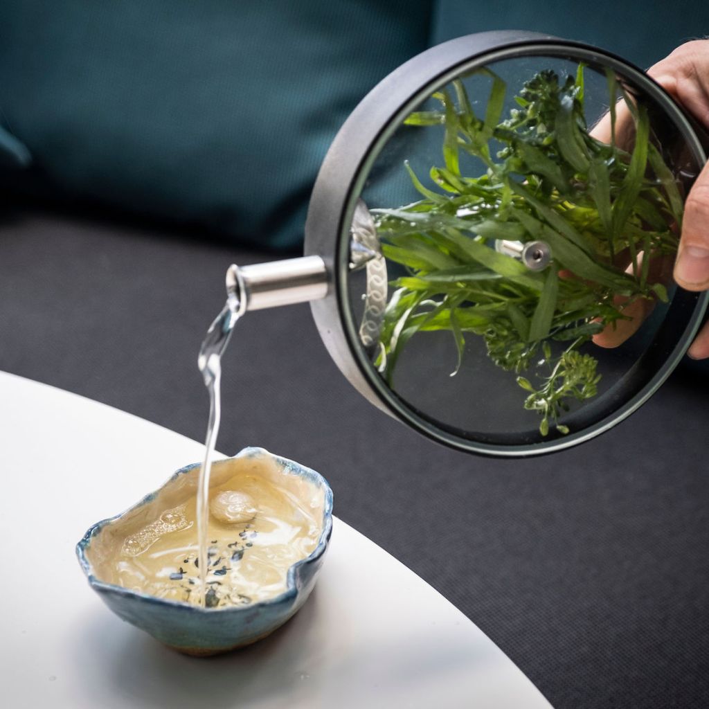 It’s not Randolph’s first project for Wrigley; she also makes the ceramic oyster shells glazed with mother of pearl for the bar’s instantly iconic “From Cayman, with Love” cocktail. Ian Fleming set many of his stories in the Caribbean and it was apparently a Caymanian fisherman who taught James Bond how to scuba dive, a detail Wrigley couldn’t resist running away with. Bond himself would surely approve of the result: a subtly tropical twist on a martini made with local sugarcane spirit infused with island botanicals, sea-mineral vermouth and a homemade fruit cordial. “It wouldn’t be an oyster without a pearl,” Wrigley says, delicately placing a pearl onion shimmering with agar inside the shell.