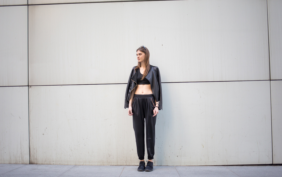 ADAY’s versatility comes from sourcing technologically advanced fabrics, which are then shaped through the lens of contemporary design. He noticed that “yoga pants were incredibly comfortable—there was some incredible fabric technology in activewear that just didn’t exist in the rest of fashion.” Their job is merging the two worlds of fashion and function together. What’s resulted are interestingly different pieces such as trackpants that look like leather, but are actually made from an incredibly practical, light active fabric that dries quickly and resists pilling. Complete with polished rose gold zippers that lock into place (so they don’t snag anything), these pants steer clear of sweats territory.