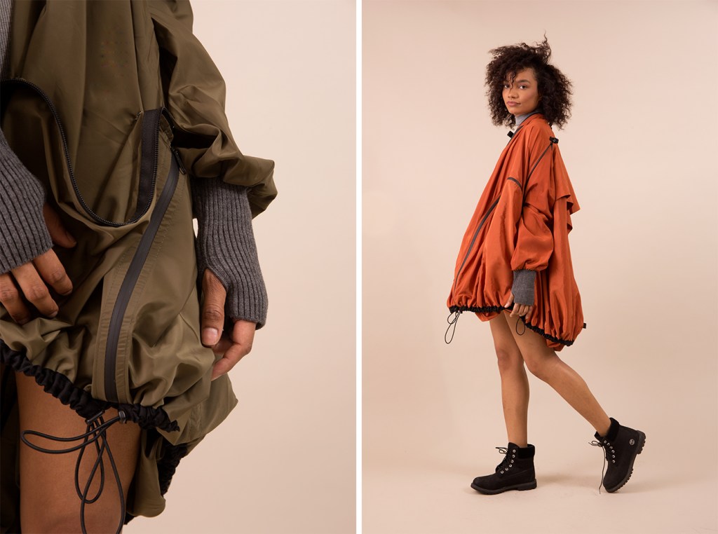 The Parsons School of Design graduate was in Greece to explore the viability of her senior thesis collection Crossing The Boundary—a range of functional, ready-to-wear items made with refugees’ needs in mind. (Jackets that can turn into sleeping bags and flotation devices, for example). The project has since become Adiff, a collection of accessories and outerwear that transforms into tents, all made of upcycled life vests and UNHCR tents sourced from the Lesvos site Luna visited in 2016.