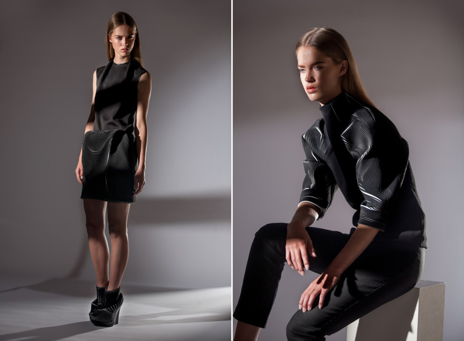 “My work is a result of a hybridization or amalgamation of fashion with various other (scientific) disciplines,” she says. “I adopt new technologies in my work to create new values and meaning for fashion.” But technology is not a mere tool for van Dongen, it’s also one of aesthetics, “There’s a strong focus on materiality in my work, since I believe the future of fashion lies in its premise to be dynamic and changing.”