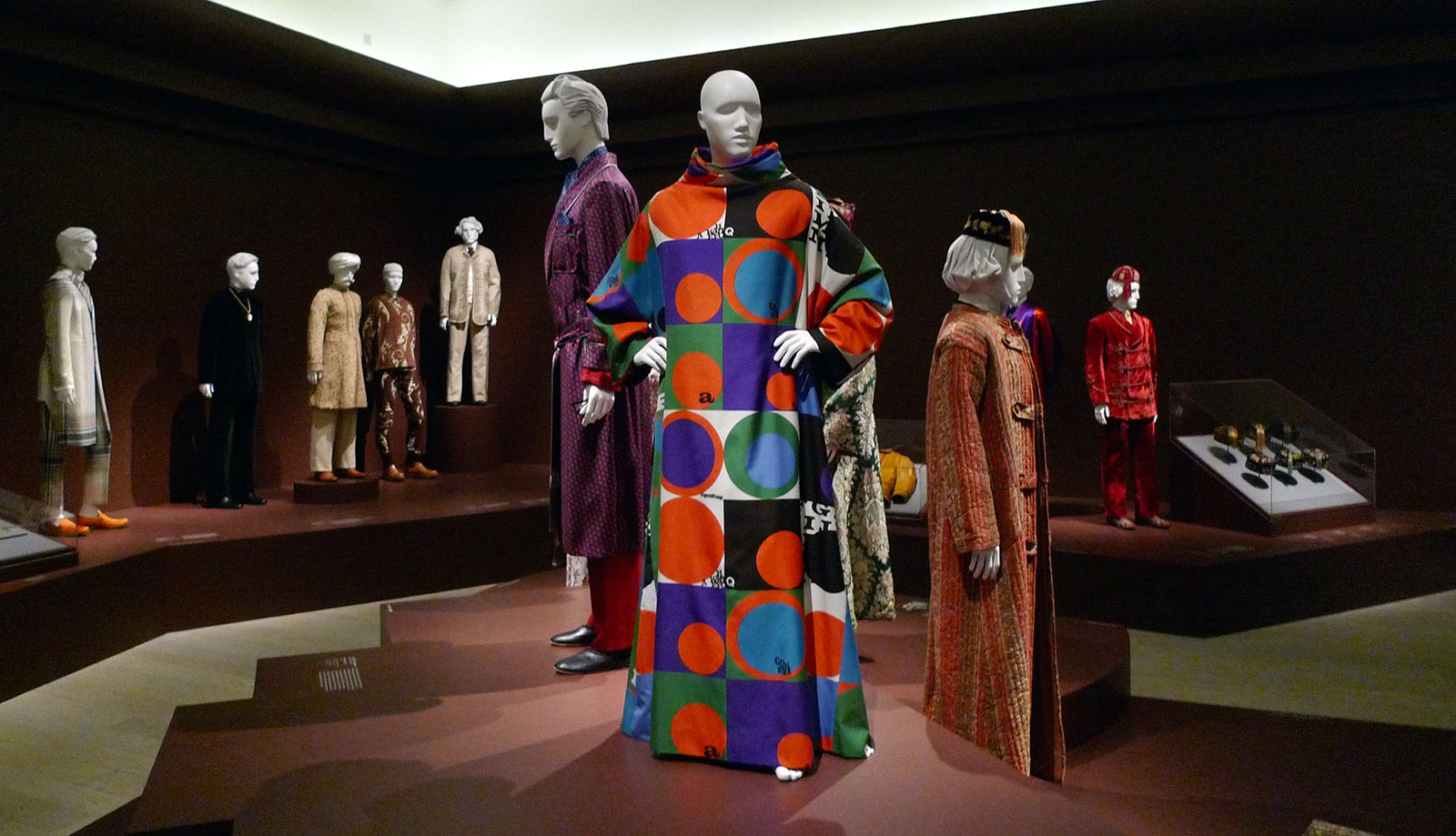 Often dresses and gowns are the stars of fashion exhibits, but this major survey features 200 looks for men, mostly pulled from LACMA’s permanent collection. The museum’s Costume and Textiles department curators organized the massive number of pieces in the show to reflect fashion trends highlighting connections and contrasts between eras. The themes—Revolution/Evolution, East/West, Uniformity, Body Conscious, and The Splendid Man—make it possible to show a 1940s zoot suit alongside a recent Jeremy Scott design.