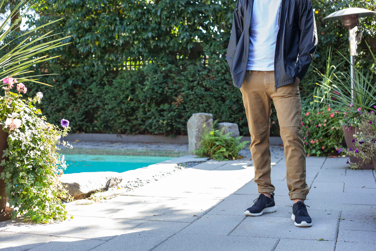 After testing out the Five-Pocket Pant for a week, we know first-hand why their proprietary fabric matters. The one percent spandex lends a nice stretch, which is balanced out by the 19% polyester for shape retention. Cotton allows for breathability, but the Tencel does so much more. It’s anti-microbial—dodging scent and sweat. And it manages moisture within—helpful on rainy or humid days. All of this occurs while still feeling like a sweat pant. They’re comfortable, but based on their design aesthetic, nobody but the wearer ever need know that.