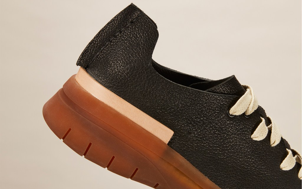 The newest sports-influenced silhouettes include the second generation of the beloved Biotrainer, the Biotrainer 2.0, a Lugged Runner inspired by hiking shoes, and a Hand-Sewn High Latex shoe that plays off the classic high-top. The first two employ vegetable tanned elk leather uppers, and the latter uses semi Cordovan leather. The Biotrainer 2.0 and the High Latex feature a cork midsole and a natural latex outsole; the Lugged Runner relies on the same cork midsole, a bamboo shank and a custom lugged rubber outsole made in collaboration with Vibram.