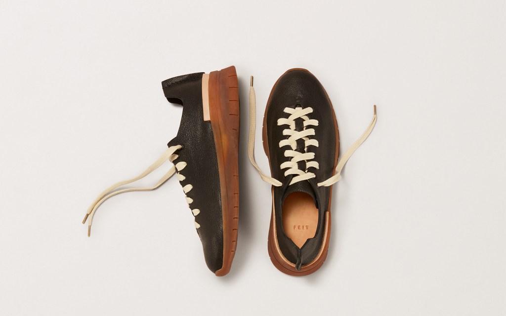 From afar, FEIT’s new sneakers reference silhouettes popularized by larger sports brands. Up close, the sneakers have an artistic quality that’s bestowed upon them by the sole craftsman tasked with building them. From applying the custom-made FEITxVibram outsole to hand-assembling the brand’s proprietary Goodyear construction (a procedure that uses water-based glue to apply the upper to the sole and ensures the sneaker can be resoled should issues arise), the wonderfully human process produces an overall appearance that cannot be replicated on a scale larger than their current editions—which sometimes are as few as 40 or as many as 204.