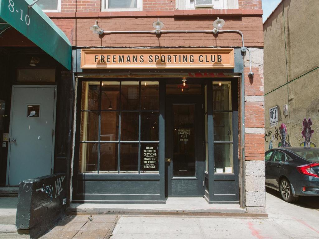 Grown out of the nearby restaurant Freemans (which claims the same name and falls under the same ownership), Freemans Sporting Club began producing clothing in 2005. First they made suits, then more and more until they ended up with their current selection: made-to-order and ready-to-wear suits, outwear, pants, footwear, shirts and watches. They assumed their current location (at Rivington Street and Freemans Alley) in 2006. The third endeavor was complete in 2013, when the Freemans Barbershop opened next door.