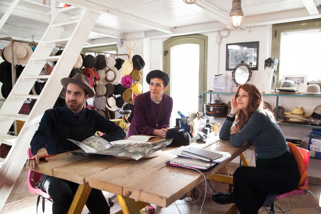 Milliners Matteo Gioli, Ilaria and Veronica Cornacchini take us into their converted workspace where handmade reigns