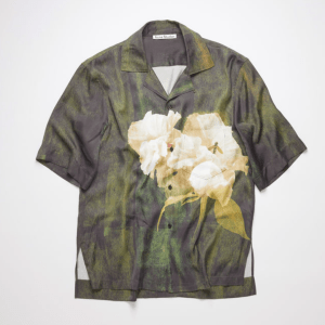 Acne Studios’ faded floral shirt ($380) is crafted from viscose and features a split hem and camp collar, making it ideal for warmer weather. A large, white flower cuts across the chest, and the dark green backdrop calls to mind mossy woods. This is a subtle, luxurious alternative to all-over patterns, while still emphasizing the botanical theme. Sized according to European standards, it’s available in 44 through 52.